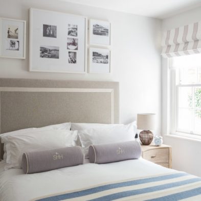 We were approached by NJG Contracting and asked to do a sample room for the refurbishment of their new hotel in Salcombe. This is a 55 bedroom hotel with large public areas that also needed curtaining. Our sample room was preferred against another competitor in the soft furnishings trade and we were then asked to quote for all rooms, including curtains with double pinch pleated headings, voiles, roman blinds, sheer rollers, bolster cushions and pelmets. The design of the window treatments was carried out by Do Designs but we worked closely with them to advise on the best possible way to install the curtains, blinds and voiles (particularly the Bradley Double French Poles that were made specifically for this project). We installed all of the window treatments over a 8 – 10 week fitting programme and had to check measure at all phases of the project.